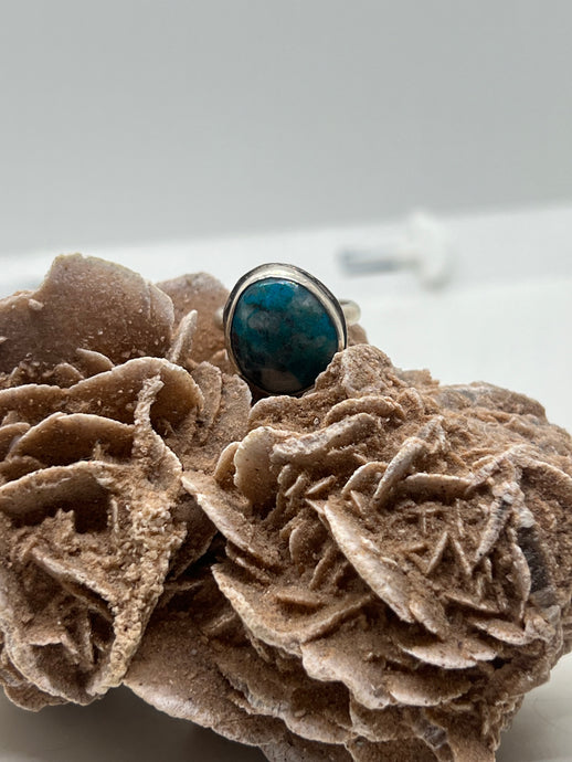 Hand Carved Chrysocolla Sterling Silver Ring Size 7.5