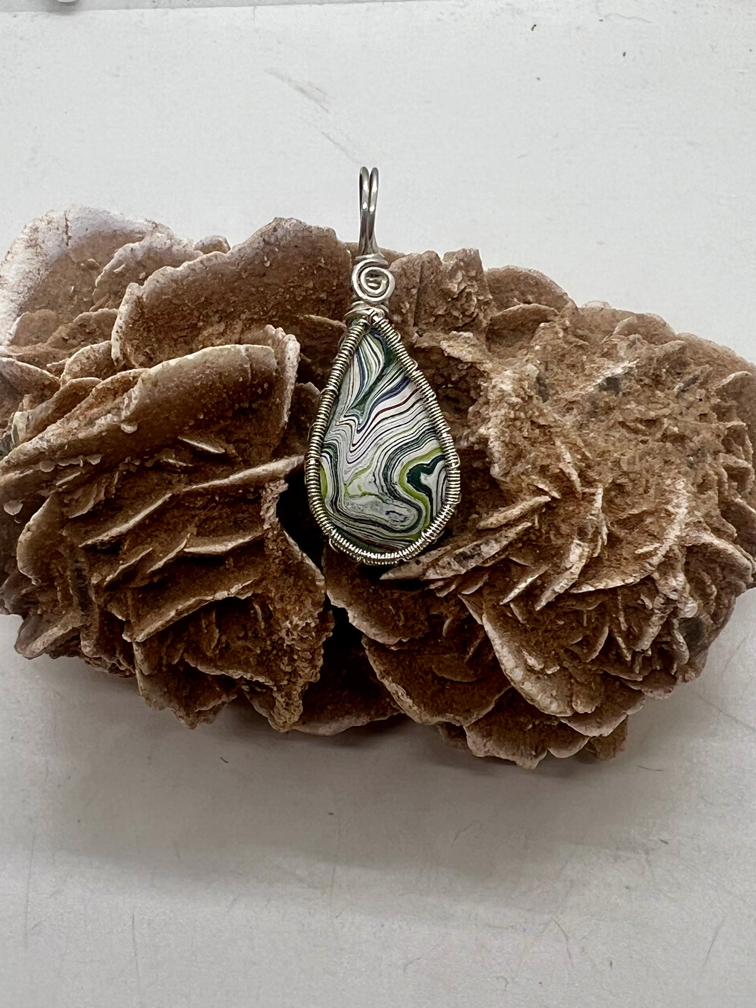 Jeep Fordite Sterling Silver Wire Wrap Pendant